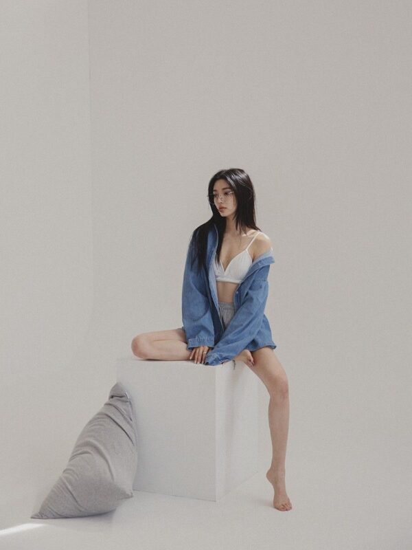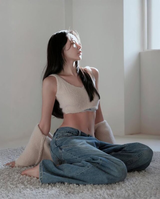 Tư thế này tạo cảm giác tự nhiên và phù hợp với phong cách nghệ thuật.