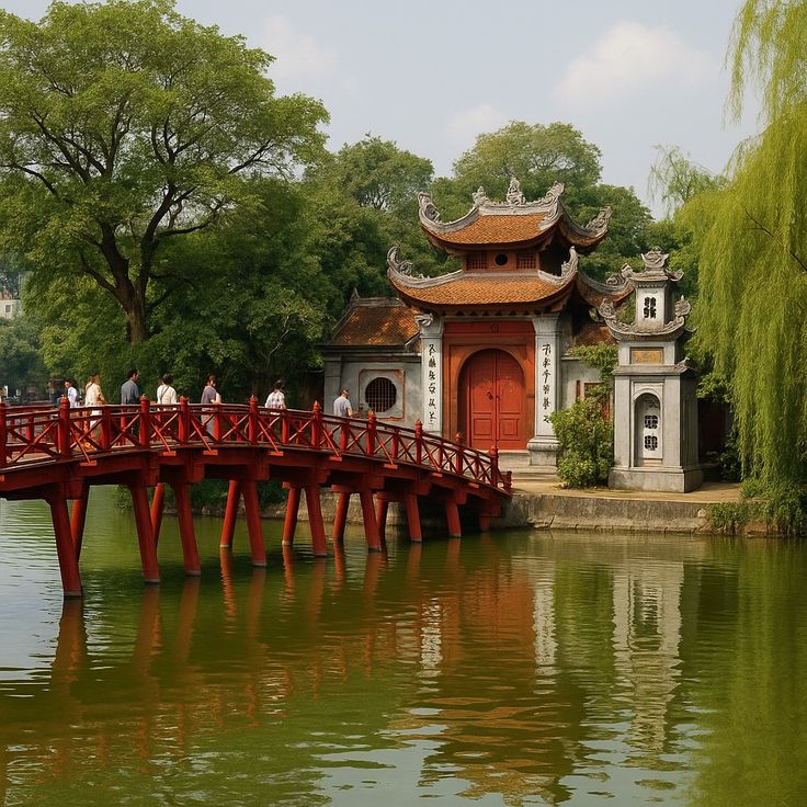 Cầu Thê Húc là một trong những điểm chụp ảnh nổi bật nhất tại Hồ Hoàn Kiếm. Với màu đỏ đặc trưng và vị trí ngay trên mặt hồ, nơi đây rất dễ tạo ra những bức ảnh có điểm nhấn rõ ràng. Tuy nhiên, vì khu vực này thường đông người, bạn cần chọn đúng thời điểm và góc đứng để có ảnh đẹp và không bị rối background.